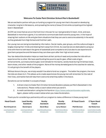 Copyright © 2024 CPC Men's Hoops - All Rights Reserved. We reserve the right to reject any donations from organizations that do not reflect the core values and principals of Cedar Park Christian Schools or Cedar Park Church.